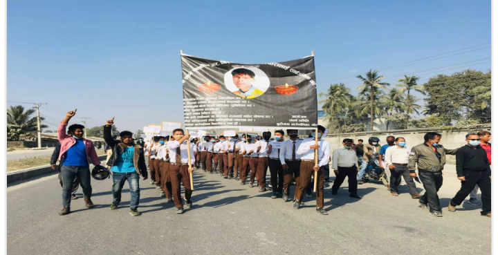मोरङको बूढीगङ्गा गाउँपालिका– ५ का निश्चल रायको हत्यामा संलग्नलाई पक्राउ गर्न माग गर्दै विद्यार्थीले प्रदर्शन गरेका छन्