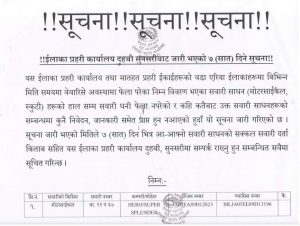 ईलाका प्रहरी कार्यालय दुहबी सुनसरीबाट जारी भएको ७ (सात) दिने सार्वजनिक सूचना
