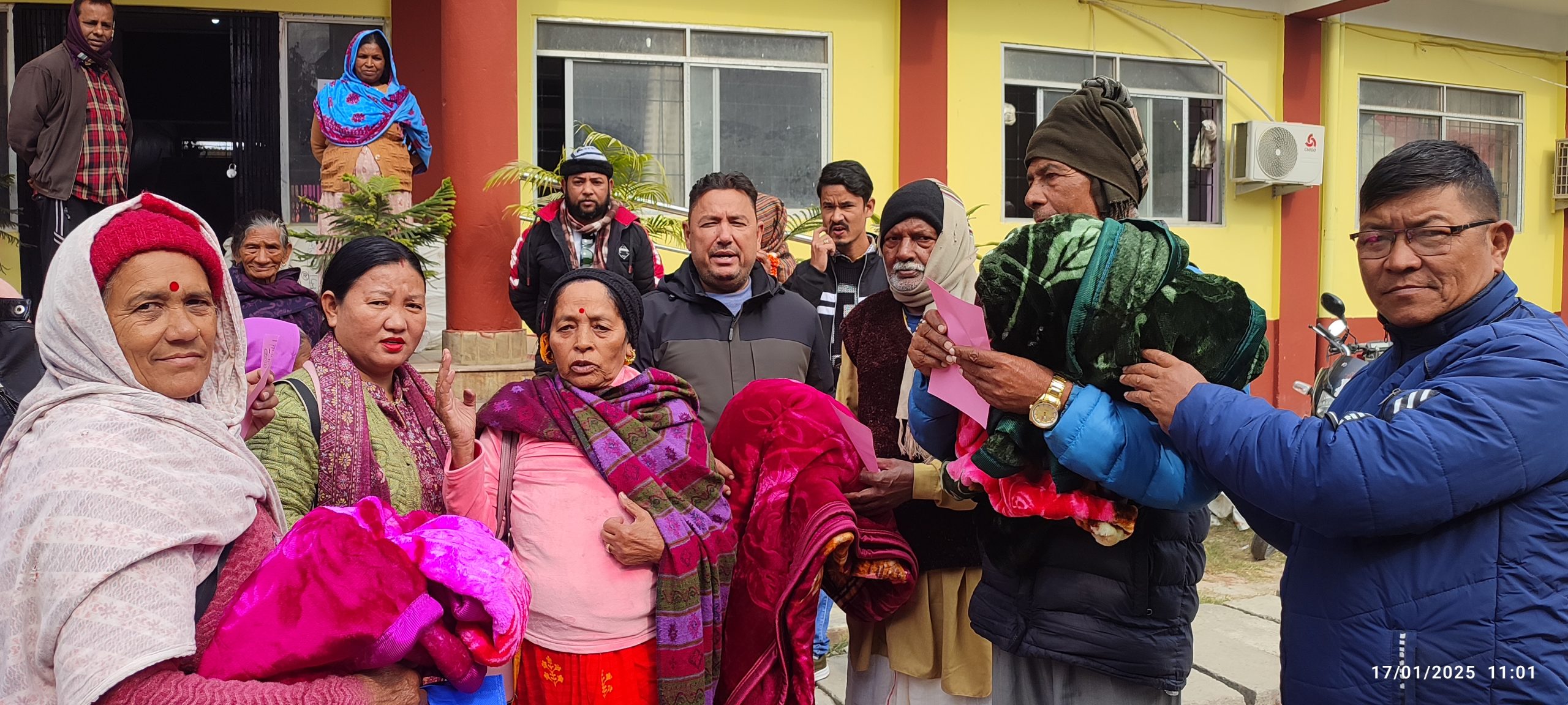 दुहबी ३ का अध्यक्ष माधव भण्डारीले उक्त सामान बितरण गरेका हुन । सो न्यानो कपडा वितरण कार्यक्रम्मा सोही वडाका वडा सदस्य हरु मैना राई , मीन बहादुर मगर , वडा सचिव , सदस्य लगायतले २७५ थान कम्बल बितरण गरेका छन् दुहबी नगरपालिकाले जाडो याममा जेस्ठ नागरिक हरुलाइ हरेक साल सम्मान स्वरुप न्यानो कपडा बितरण गर्दै आएको छ। न्यानो कपडा पाएपछि जेस्ठ नागरिकहरु खुसीले गदगद हुदै जनप्रति हरुलाइ आशीर्वाद दिदै घर फर्केका थिए।
