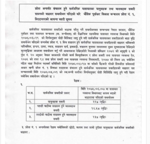 प्रदेश १ सरकारले प्रदेशस्तरमा चल्ने सार्वजनिक सवारीको भाडा बढाएको छ । प्रदेश-१को भौतिक पूर्वाधार विकास मन्त्रालयले सार्वजनिक सवारीको भाडा २३ प्रतिशतसम्म बढाएको हो ।
