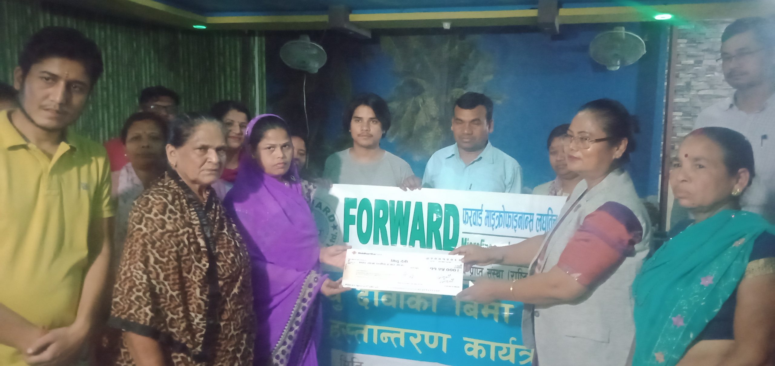 दुहबी(कोस)/फरवार्ड माइक्रोफाइनान्स लघुबित्त बित्तीय संस्था लिमिटेडले मृत्यु दावीको बिमा रकम हस्तान्तरण गरेको छ । दुहबी नगरपालिका ५ निवासी स्वर्गीय हरेराम साहका श्रीमती नितु साहलाई फरवार्ड माइक्रोफाइनान्स लघुबित्त बित्तीय संस्था लिमिटेडले मृत्यु दावीको बिमा रकम ११ लाख २५ हजार हस्तान्तरण गरेको हो ।
